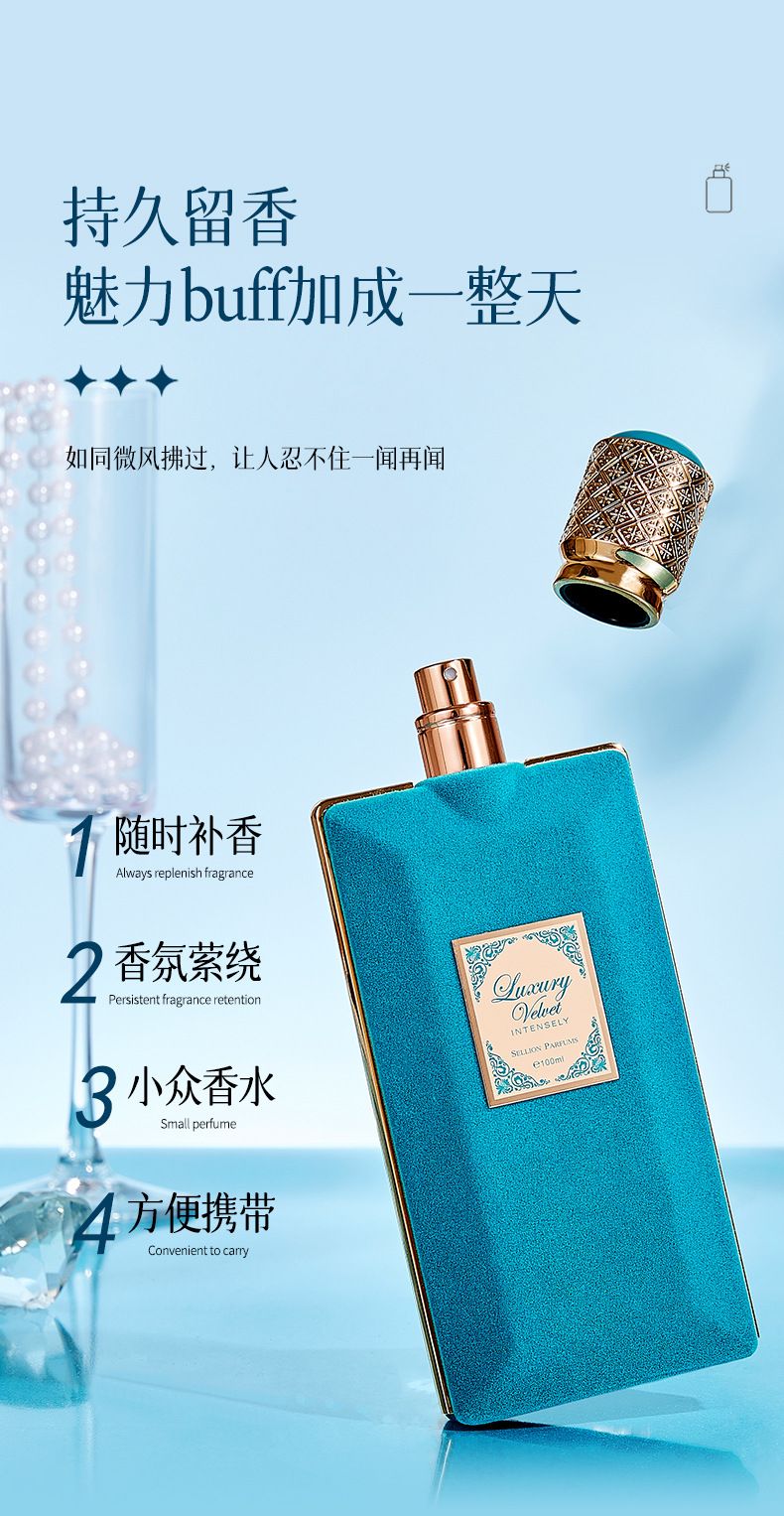 雪爾妮蘭天藍絲絨香水辛辣東方調中性香水絲絨瓶持久留香100ml