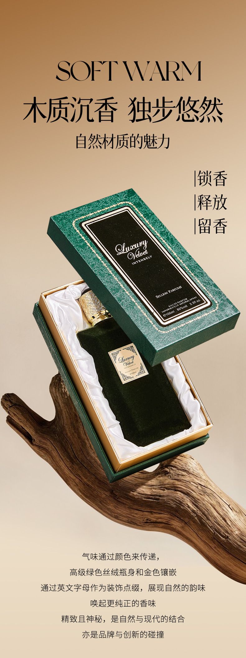 雪爾妮蘭綠韻絲絨香水芳香木質調中性香水絲絨瓶持久留香100ml